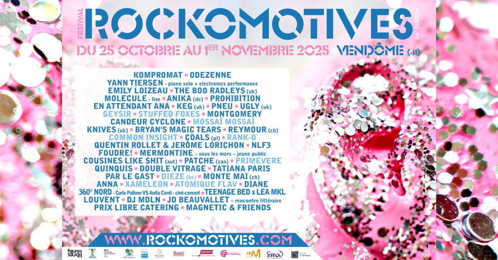 Nouvelle année, nouvelle édition des Rockomotives. Et quelle édition ! Kompromat, Odezenne, Anika et tous les artistes de la région centre que j’adore : les Stuffed Foxes, Geysir ou encore Teenage Bed x Léa MKL. A l’image de l’affiche, je suis certaine qu’on va repartir du festival des paillettes plein les yeux !