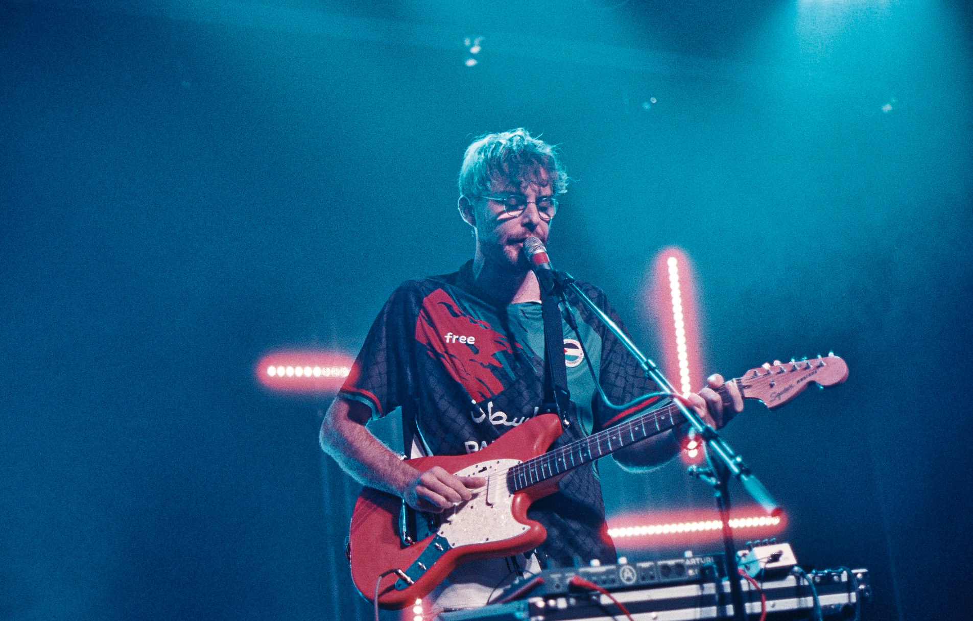 Lila Sober évoque sa guérison, l’aide de ses proches et sa sobriété. Une santé mentale morcelée mais bien tenace. J’ai eu la chance d’assister déjà deux fois à son live. Seul sur scène, il défend son album, nous offre ses pensées et prend place. Ému mais vivant. Il porte un maillot aux couleurs de la Palestine, alterne sonorités métalliques, silences ouatés et beats énervés. Il dessine la fête, le deuil, les remords puis la paix, le réconfort, la réparation, l’après.